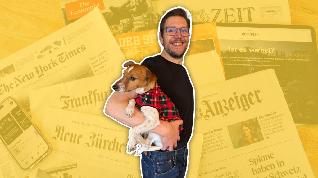 Waldo trägt ein neues Mäntelchen – Pascal Turin strahlt, als hätte er es selbst designt. Bildmontage: RathuusUnser Redaktionshund Waldo hat wieder einmal einen Blick in die Welt der Medien geworfen. Er sagt dir, was du unbedingt wissen musst und wo der Hund begraben liegt.