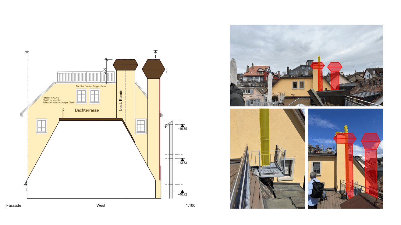 „Damit hat unser Argument voll gestochen, was uns sehr freut“, so der Anwalt der Rekurrenten weiter. Konkret halte das Gericht fest, dass „die Kamine vom öffentlichen Raum aus sichtbar sind, wenn auch nur (aber immerhin) in einem schmalen Sichtbereich“. Der Standort auf der anderen Seite der Limmat am Augenschein war laut der Gegnerschaft folglich richtig.