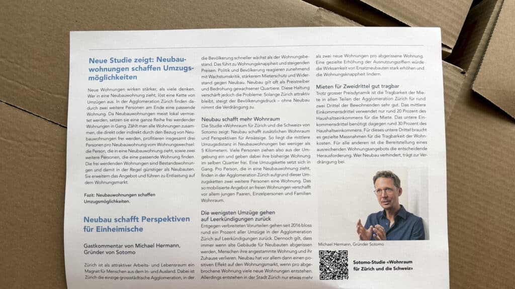 Dieser Gastkommentar von Politgeograf Michael Hermann in der bürgerlichen "Wohnziitig Züri" gegen die zwei linken Wohninitiativen wirft Fragen auf. Bild: Pascal TurinDie Gegner der beiden Mieter-Initiativen, die am 14. Juni zur Abstimmung kommen, rühren mit der grossen Kelle an. Dazu konnten sie Politgeograf Michael Hermann ins Boot holen. Hermann sagt gegenüber Rathuus: „Es passt mir, wenn man mich nicht auf sicher politisch verorten kann.“