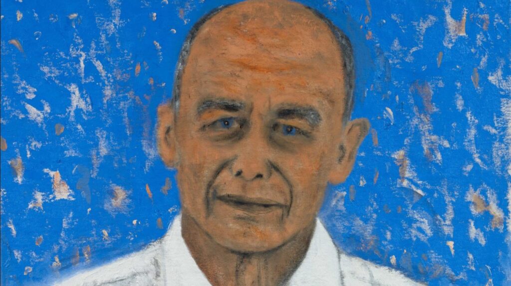 Nicht gerade das staatsmännisch wirkende Gemälde ist diese Interpretation (Ausschnitt) von alt Bundesrat Ueli Maurer (SVP) durch den Künstler Dieter Hall. Gleichwohl hängt es in der Ahnengalerie der kantonalen Verwaltung. Bild: zvgRegierungsrat Martin Neukom (Grüne) lehnte drei Porträtentwürfe ab. Doch lange nicht alle Gemälde in der Ahnengalerie gelten bei Kunstlaien als schön – so etwa jene von Christoph Blocher, Markus Notter oder Ueli Maurer. Alt Bundesrat Maurer erklärt gegenüber Rathuus, warum er sein Porträt damals trotzdem akzeptierte.